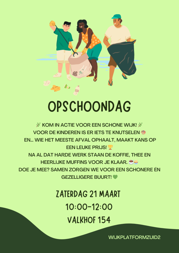 A.s. zaterdag 21 maart 2026 is het weer zo ver, de landelijke opschoondag! Van 10:00 tot 12:00 Kom je ook helpen? Samen maken we de wijk weer mooier. Kleine moeite groot plezier. Aanmelden is niet nodig. Koffie, thee en iets… Verder lezen →