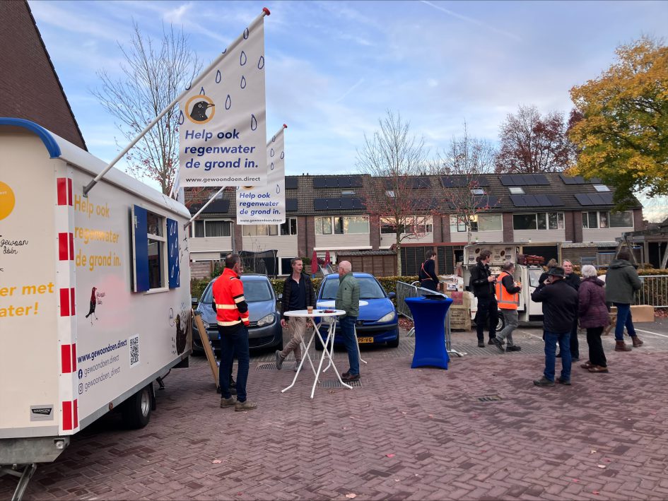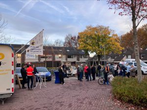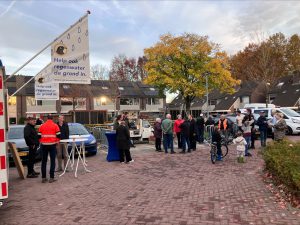 Het was gezellig op de goudenstein. Er was een koffiekraam. En een duurzaamheidslocket. De bewoners konden een plant ophalen. Ook was Jan er van het wijkplatform. Het was het startschot voor het planten van de nieuwe bomen.